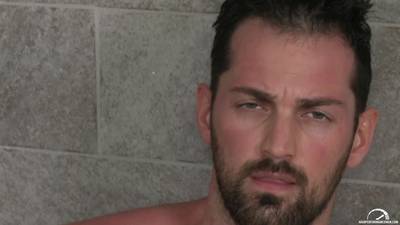 Le beau DILF sort de la douche et a une envie de se branler, il va le faire et se mettre en Doggystyle par terre montrant son anus