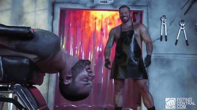 Teddy Bryce se met en position de Pilonnage pour se prendre le gros poing de Hugh Hunter dans le cul. Son anus est dilaté comme jamais !
