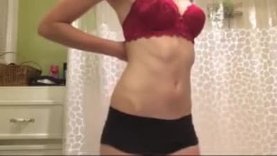 La petite salope va se déshabiller en strip et va s'enfoncer ses petits doigts dans la chatte. Elle va ensuite passer au vibro et s'enfoncer un vêtement