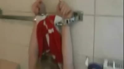 Elle est attachée, cul par terre et les bras levés. Elle se prend le gros poing d'un gars dans la tecuh, il lui bonde les seins et lui renverse de la cire