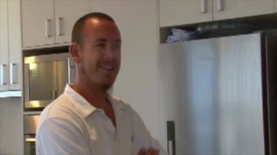 Le gars se fait surprendre par une bonne pipe en pleine cuisine. Le mec le couche sur le balcon et lui couvre le fion de bave