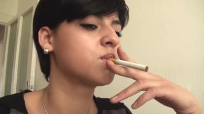 Elle prend le temps de fumer sa cigarette et occupe sa bouche à sucer la queue.Elle se fait baiser en missionnaire et se tripote le clito, faciale en prime