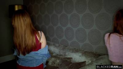 Les deux jolies rousses vont se partager le lascar black tatoué à grande bite, elles vont bien le sucer à deux et se faire pénétrer !