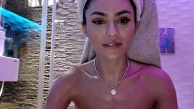 Brune amatrice suce son gode sous la douche et se masturbe avec vibro