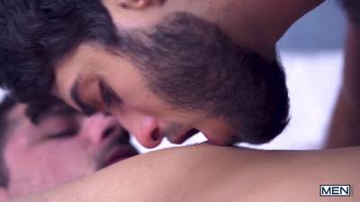 Diego Sans lèche le fion de Ryan Bones en lui mettant des doigts. Il le prend très vite en levrette debout en finissant par le doigter à nouveau.