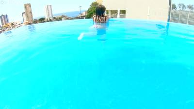 Tu te baignes avec une jeune salope dans une piscine. Elle suce ta grosse teub avec amour, tu lui lèches la chatte, la baise et éjacule sur son joli visage