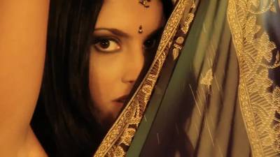 Une scène sensuelle d'une jeune femme indienne délicate, montrant discrètement et artistiquement son corps sexy, ses seins et plus encore.