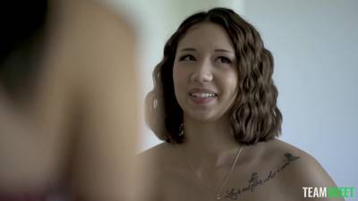 En rentrant, elle trouve sa copine avec une bite dans la chatte. Ils vont baiser tous les trois, entre broute-minou, fellation et pénétrations. Totrride.