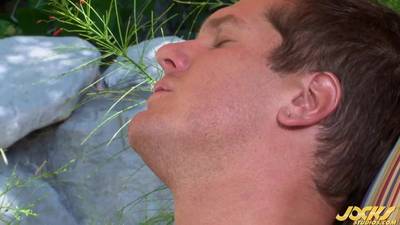 Parker est seul, il ressent l'envie de se branler, il se caresse un petit peu et sort sa queue pour une branlette en solo en se passant le glaçon
