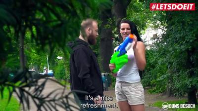 La fille s'amuse avec un pistolet à eau. Mais à la maison, la rigolade passe au sexe avec un mec, que Jolee Love a trouvé au parc public