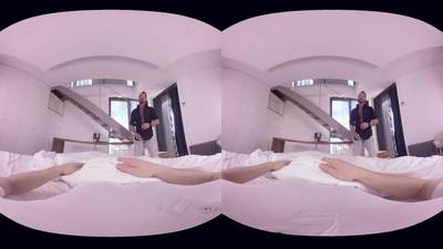 Ce beau gosse brun ose un strip pour exciter son mec, il lui lèche les couilles délicatement et l'encule, tout en réalité virtuelle
