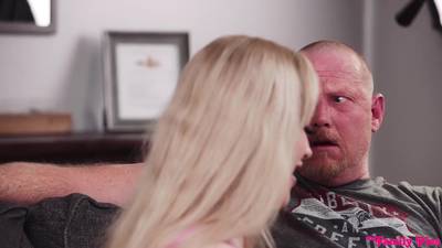 Les deux blondes veulent baiser, elles vont s'échanger les 2 beaux-pères pour se régaler, une baise à quatre sur le canapé.