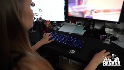 Une joueuse amateur joue et chevauche un godemiché. Son homme est tellement excité qu'il la baise en levrette pendant qu'elle continue à jouer.
