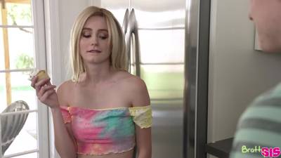 Cette petite blonde est une salope qui laisse le gâteau à son demi frère à condition qu'il la baise profondément ensuite.