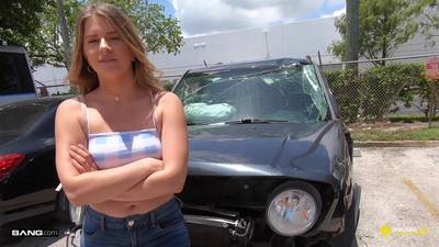 La blonde adore sucer les sucettes mais elle préfère une bonne bite, elle va réussir à gérer le garagiste pour avoir un tarif spécial.