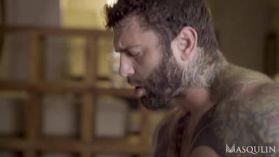 Markus fait d'abord un bon rimming à Trent pour y enfoncer sa queue en premier, lui aussi va ensuite défoncer son petit cul musclé