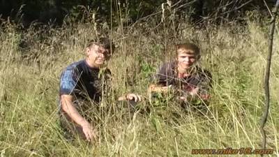 Trois jeunes mecs se retrouvent dans la foret pour se sucer et pratiquer la sodomie en extérieur, ils s'éjaculent tous dessus pendant l'acte