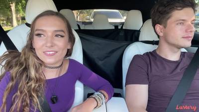 Bailey & son mec se font vidéo hot en voiture : il la doigte, elle le suce & le chevauche quand il conduit, avant une levrette finale au bord de la route.