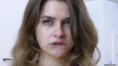 Jeune fille brune qui est fatiguée de travailler et qui s'autorise une pause pour se toucher les seins et la chatte et se détendre