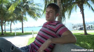 Le brun essaie de mettre la queue en bouche mais il ne met que le gland tellement elle est grosse, il se la prend dans le fion hardcore
