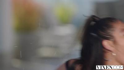 Le français va rencontrer la jolie brune sur le toit avec piscine, ils vont bien profiter, bonne baise intense au bord de la piscine.