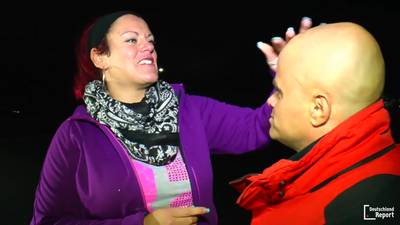 Une allemande tatouée aux gros seins se déshabille et baise sur le sol avec un inconnu rencontré dans la rue.