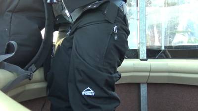 Cette petite salope enlève ses vêtements dans le téléférique du ski, elle taille une pipe au dildo et se l'enfonce au fond de la chatte