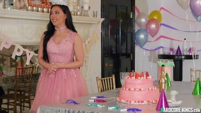 Whitney Wright est triste le jour de son anniversaire, mais sa copine Bridgette B, une milf à gros seins, arrive enfin et la baise avec un strapon !