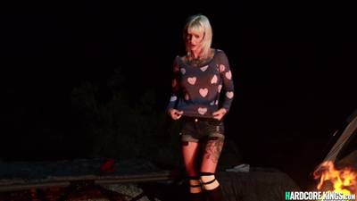 La blonde Kleio Valentien, tatouée et dotée de faux gros seins, passe une soirée romantique sous les étoiles avec Tommy Gunn et le baise à fond.