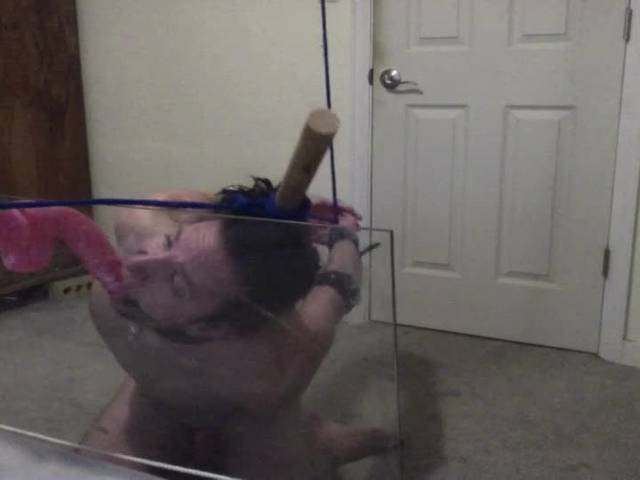 Ce gars adore le shibari et être attaché. Sans dominateur, il s'attache lui-même et suce un gros gode rose fluo devant sa cam !