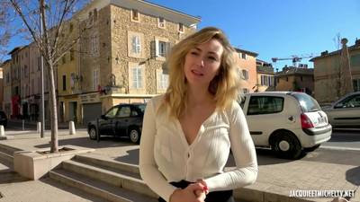 La jolie blonde enchante son client des son arrivée en exhibant légèrement ses seins. Elle va ensuite se mettre en lingerie et se faire baiser en levrette