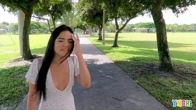 La jeune latina va rencontrer un lascar black au parc, elle va le raccompagner chez lui pour tester la grosse bite, elle est très heureuse.