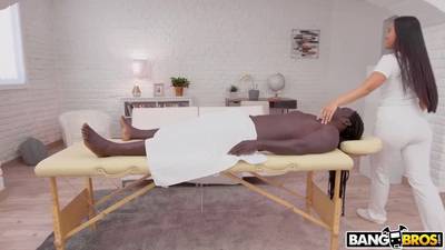 Un noir à grosse bite baise une asiatique maigre à petits seins et chatte rasée et au cul huilé pour se vider les couilles sur sa langue de grosse salope