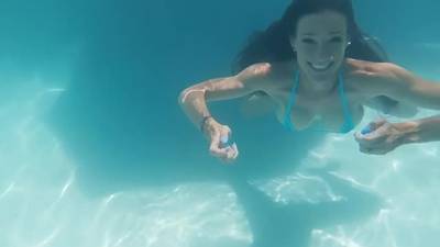 La jolie milf veut expérimenter du sexe dans la piscine avec la gopro sous l'eau, elle suce sous l'eau et se prend un creampie.