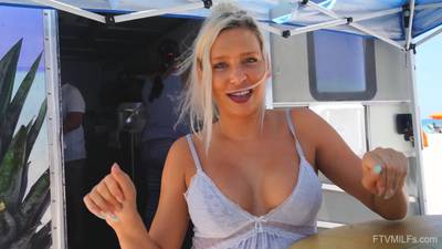 MILF chaude se masturbant dans la voiture en allant à la plage