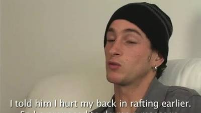 Le garçon mince a une grosse bite, qu'il masturbe souvent devant la caméra en regardant un magazine porno et quand il jouit, il s'essuie !