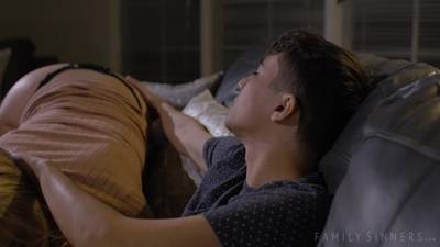 Elle a de gros seins et un bon cul pour apprendre à son beau fils à utiliser sa queue bien raide et dérider au mieux ce jeune coq a l’air si blasé