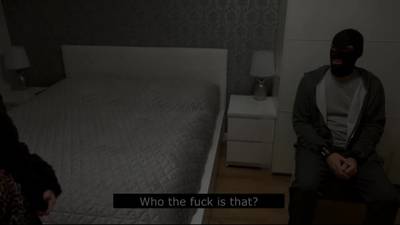 Un soumis assiste à la baise de sa femme.Le mec se régale et se vide les couilles sur le cul de la femme que le cocu se fera un plaisir de venir nettoyer