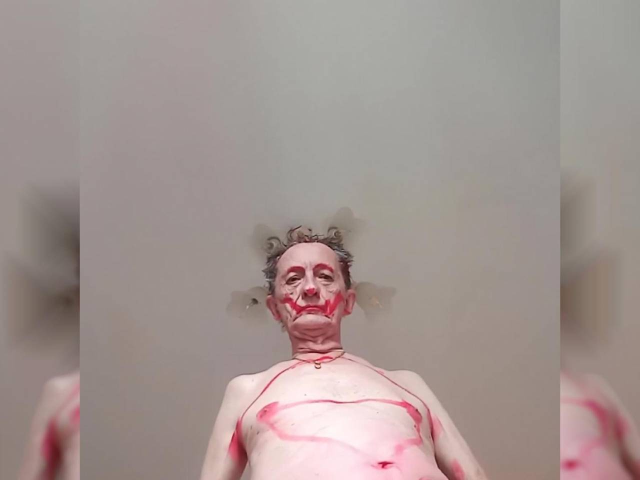 C'est un vieux pervers qui aime partager sa vie perverse devant la caméra en utilisant un rouge à lèvres pour peindre son visage et son ventre et danser.
