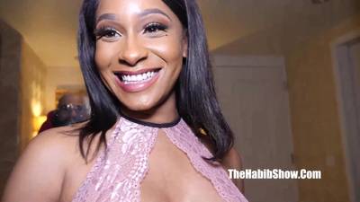 Cette ébène portant de la lingerie sexy vient se faire huiler les seins et les fesses par cet amant au cul épais et se faire masser le cul avant de l'enculer.