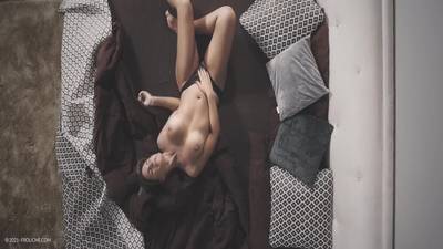 Une femme à forte poitrine qui sort de la douche, s'allonge sur le dos et écarte les jambes pour pouvoir se doigter jusqu'à ce qu'elle jouisse.