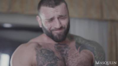 Deux ours tatoués, Markus Kage et Andrew Green, s'enfoncent leur bite dans leur bouche et leur trou de balle.