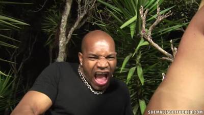 La strip-teaseuse Michelle Charme se fait détruire le trou du cul par une grosse bite noire en plein air et avale tout son sperme !