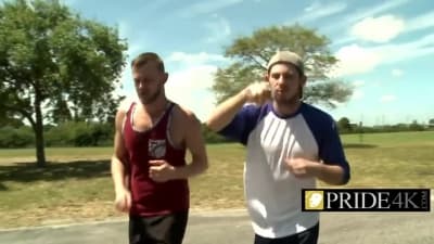 Un beau gaillard avec une grosse bite, baise un mec après une séance de fellation au lit, après une course. Ce type d'exercice sexuel gay est le meilleur !