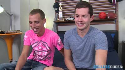 Jamie Delrey est nouveau dans le porno, alors pour lui souhaiter la bienvenue, Jordan Thomas, accroché, va lui faire la peau sur son trou du cul de twink
