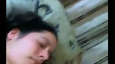 Une femme mûre est allongée nue sur le lit et sa chatte poilue est doigtée par son mari. Il l'ouvre avec ses doigts et enfonce la tête de sa bite.