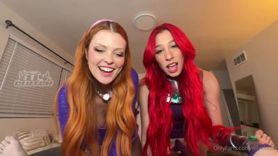 Deux filles aux cheveux roux et aux gros seins apparaissent dans une scène en POV alors qu'elles sucent une grosse bite et reçoivent une faciale !