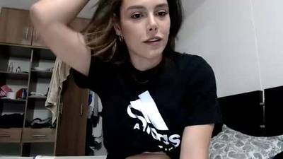 Cette trans sportive sort sa bite et la frotte avec ses mains expertes. Elle a envie d'exploser sur elle-même !