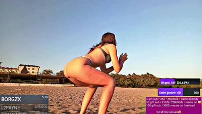 Une teen au corps sexy en maillot de bain fait des exercices physiques devant la webcam sur la plage ! Elle veut vous exciter en faisant du squat !