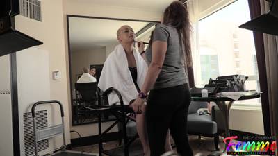 Une trans brune se prépare pour un chauve. Une femme l'aide à se peindre et à s'habiller. Belle et chic, elle reçoit une sodomie profonde.